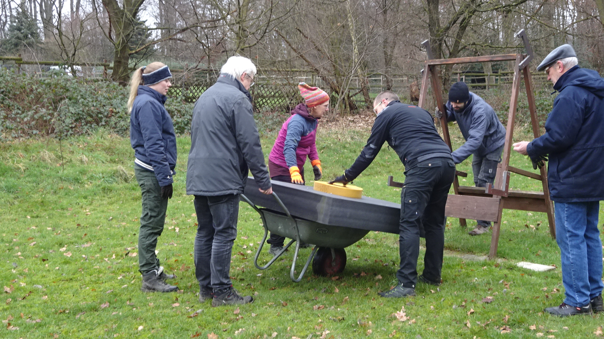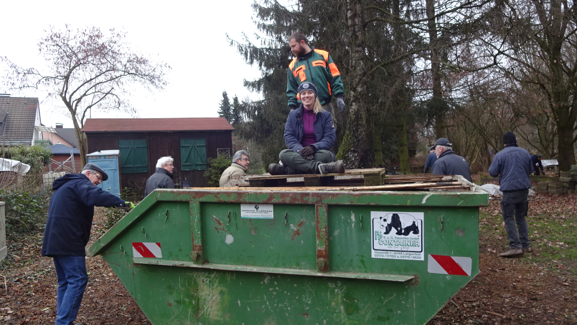 Da sich erfreulich viele aktive Vereinsmitglieder eingefunden hatten, waren die notwendigen Arbeiten schnell erledigt. Ein Container wurde mit den Resten eines Bretterzaunes und anderem Altholz gefüllt, und auf der großen Wiese wurden mehrere Scheiben und Ständer abgebaut und ins Trockene gebracht. Es steht weiterhin eine geringere Anzahl von Scheiben auf dem Platz, aber ob der Schießplatz in dieser Wintersaison noch benutzt werden darf, und wenn ja, unter welchen Bedingungen, ist noch nicht entschieden. Der Vorstand müsste dazu eine entsprechende Information veröffentlichen.